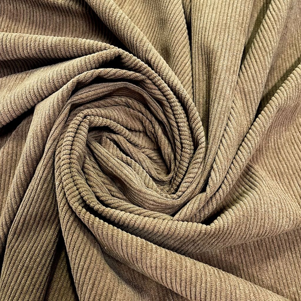 Плотный, и в то же время приятный материал с матовым блеском по лицевой стороне и нежной бархатистой поверхностью. На лицевой стороне классический ворс, создающий фактуру в полоску. Хорошая плотность ткани обеспечивает ее высокую износостойкость. Вещи из вельвета всегда актуальны, удобны в носке и не мнутся. Ткань прекрасно подходит для пошива свитшотов, платьев, юбок, а также спортивных костюмов.